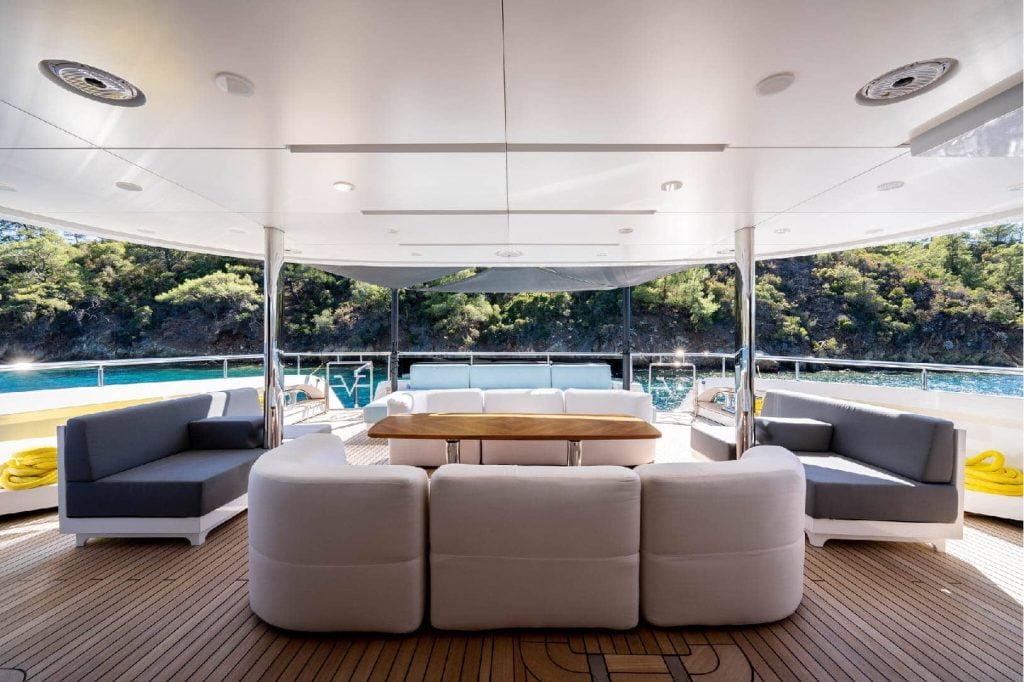 B.A.L.M.Y, geniş sosyal alanları ile misafirlerine sosyalleşme ve rahatlama imkanı sunuyor. Yatın güvertesi, güneşlenme alanları, jakuzi ve dinlenme bölümleri ile donatılmıştır. Aynı zamanda, özel yemek davetleri ve etkinlikler için uygun olan geniş bir yemek alanı da bulunmaktadır. Yatın tasarımı, misafirlerin deniz manzarasının tadını çıkarırken aynı zamanda konforlu bir ortamda vakit geçirmelerini sağlıyor.