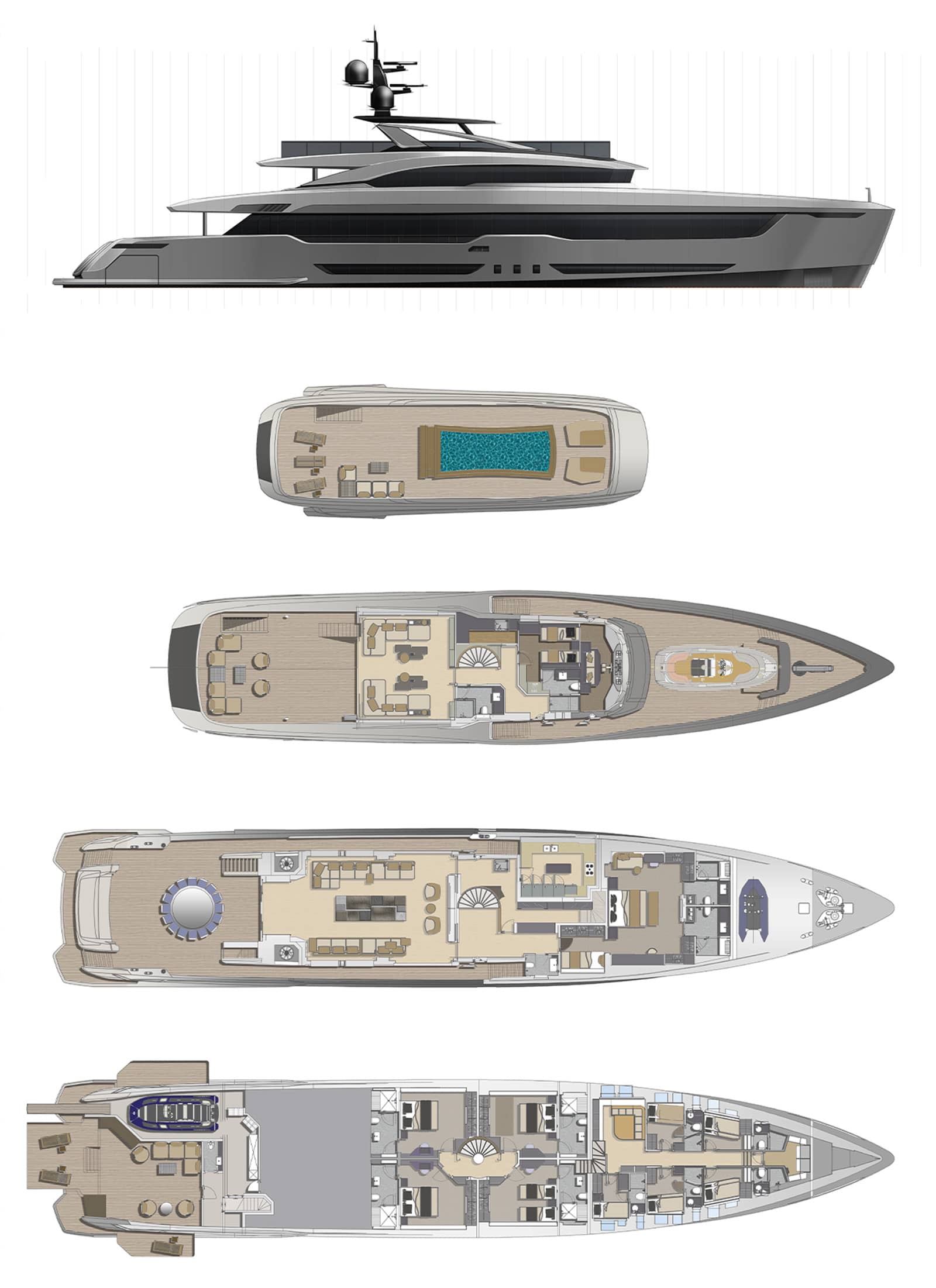 İç mekanlarda kullanılan malzemeler ve tasarım detayları, yatın her köşesinde birinci sınıf bir deneyim sunuyor. Geniş yaşam alanları ve özenle seçilmiş mobilyalar, B.A.L.M.Y’nin konfor ve estetiği nasıl bir arada sunduğunu gözler önüne seriyor. Konforun yanında, her kabin en son teknoloji ile donatılmış olup, misafirlerin her türlü ihtiyacını karşılayacak şekilde tasarlanmıştır.