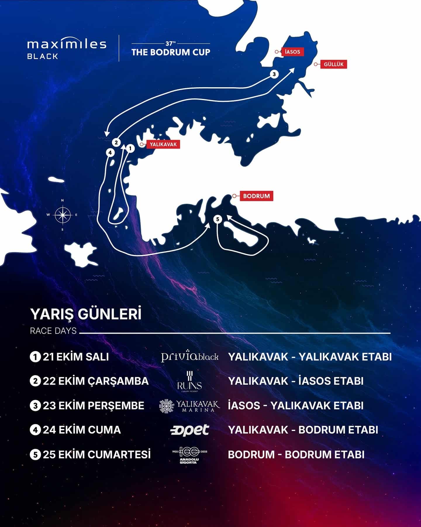 Etaplar boyunca tekneler, Privia Black, Ruins Bodrum, Yalıkavak Marina, Opet ve Anadolu Sigorta sponsorlu yarışlarda kıyasıya mücadele edecek.