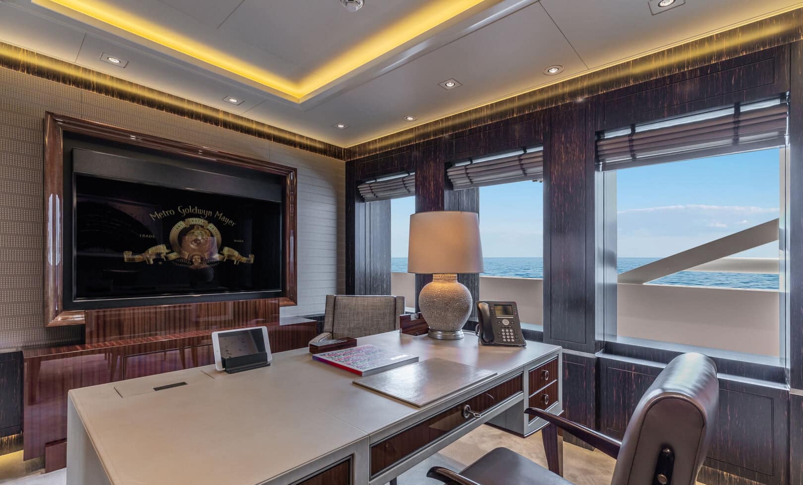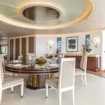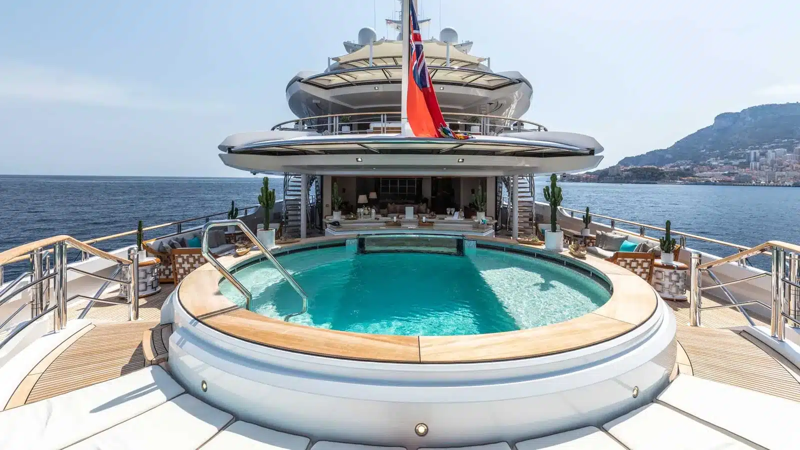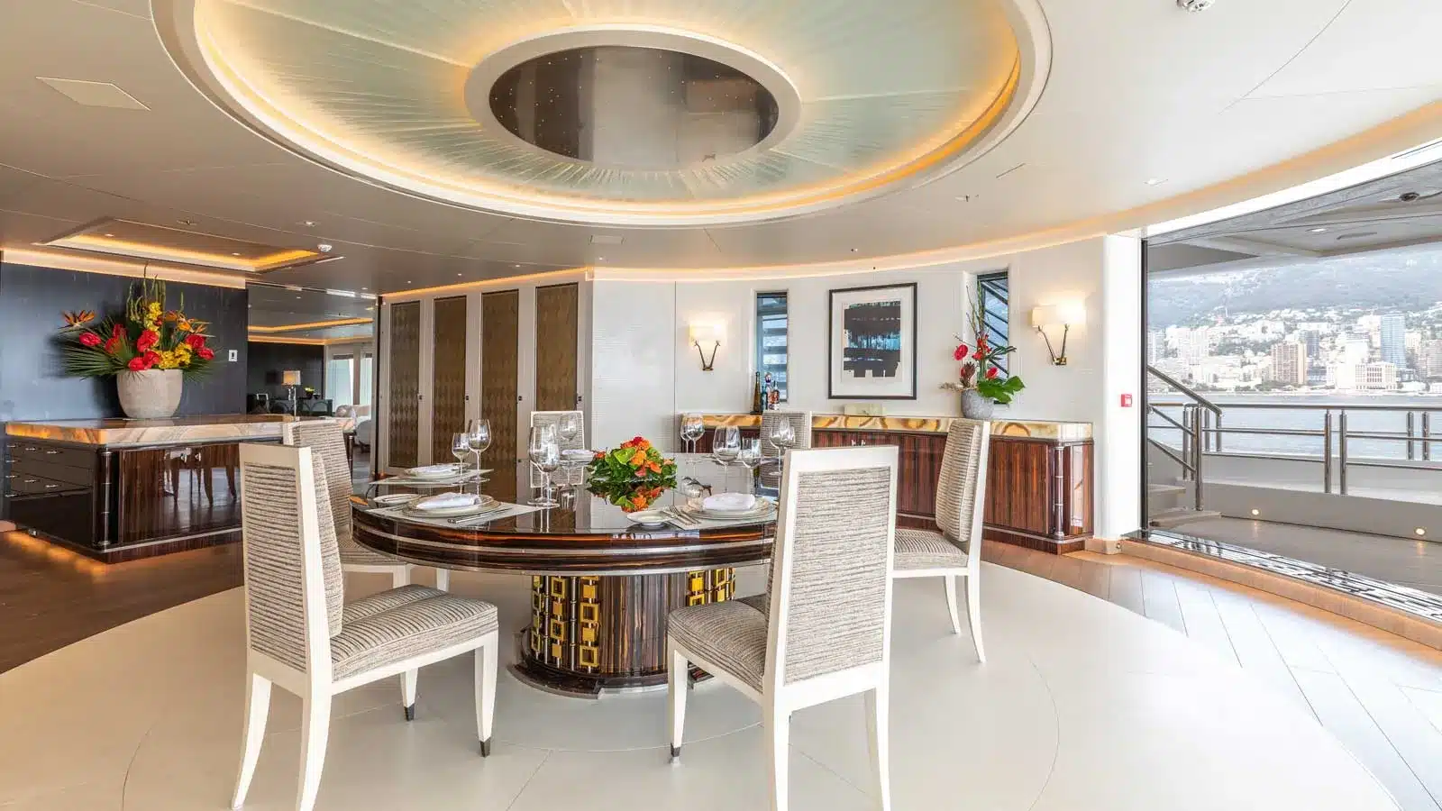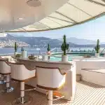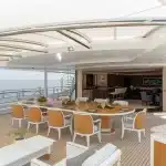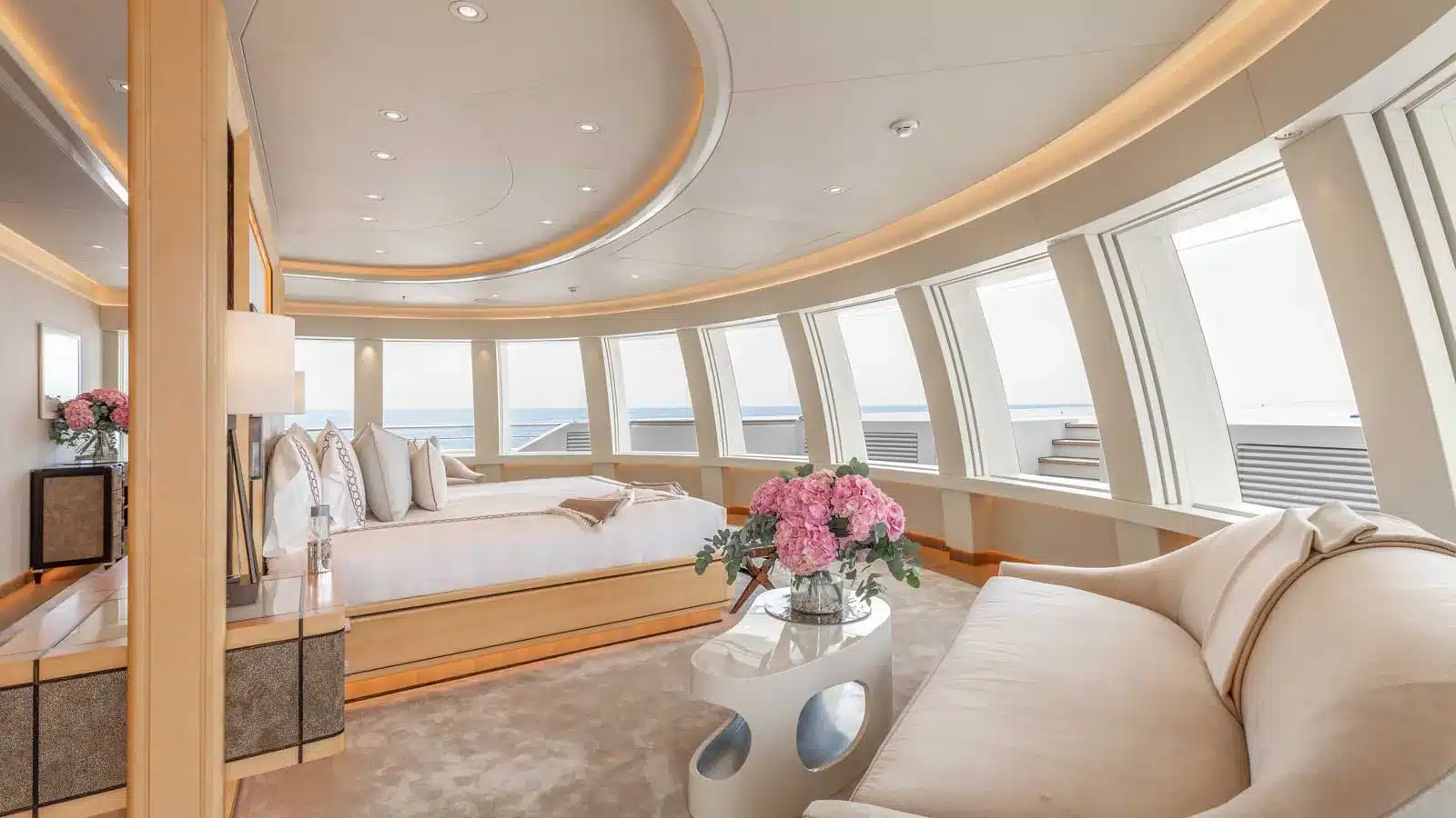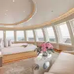 Yatın iç özellikleri arasında 5 metrelik dairesel yüzme havuzu, son teknoloji ile donatılmış bir sinema salonu ve plaj kulübü yer almaktadır. 12 misafir kapasitesine sahip olan yat, mürettebat için 16 kişilik konaklama alanı sunmaktadır.