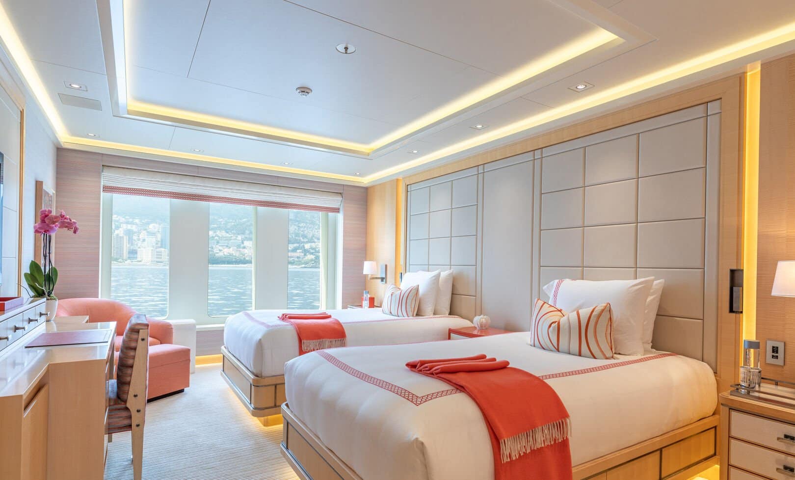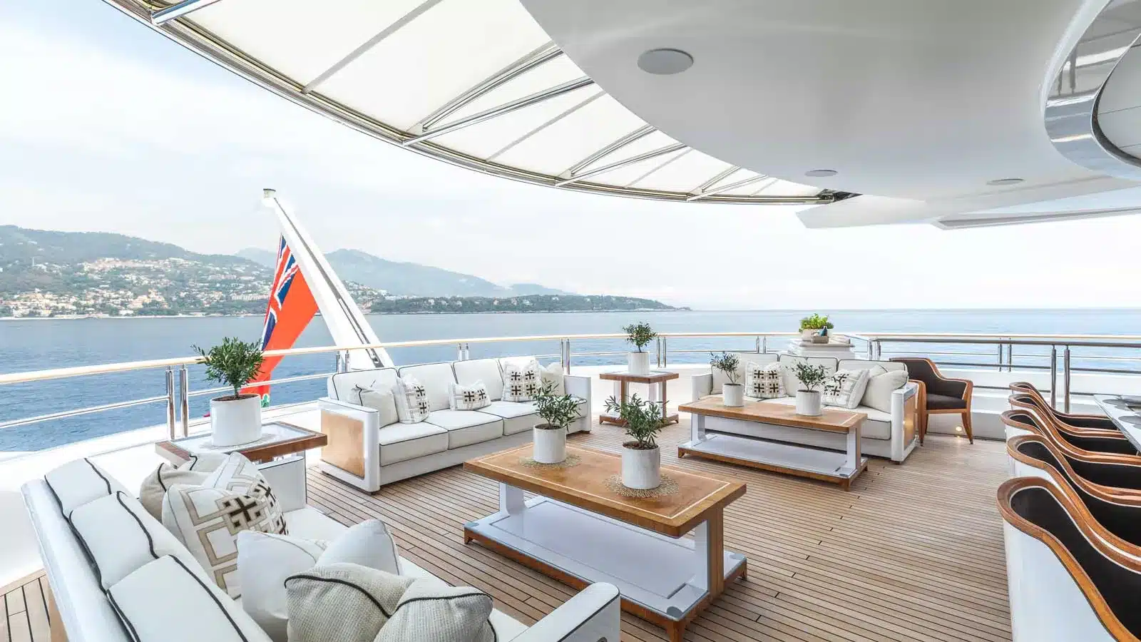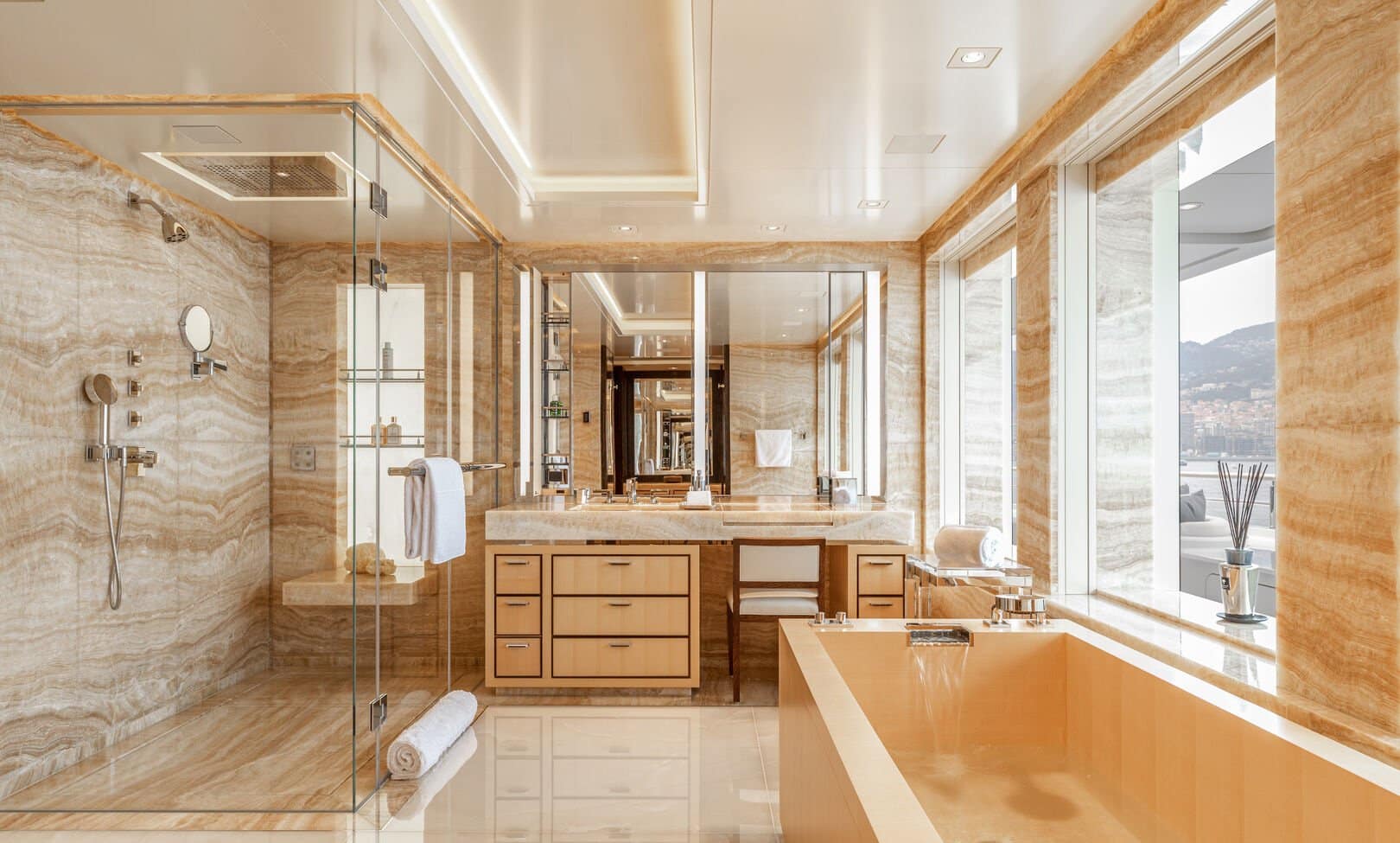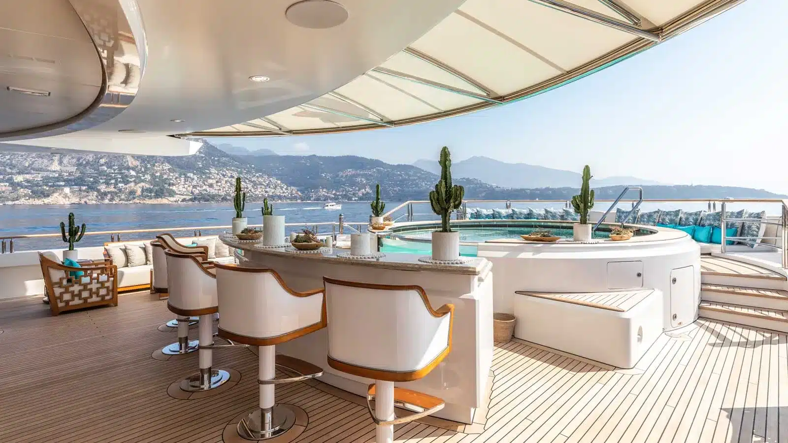 Yatın iç özellikleri arasında 5 metrelik dairesel yüzme havuzu, son teknoloji ile donatılmış bir sinema salonu ve plaj kulübü yer almaktadır. 12 misafir kapasitesine sahip olan yat, mürettebat için 16 kişilik konaklama alanı sunmaktadır.