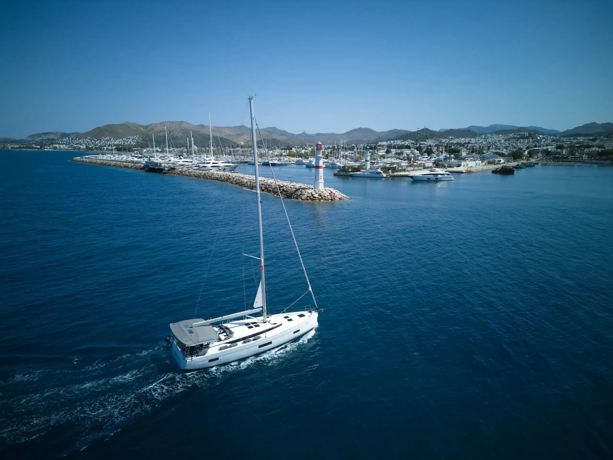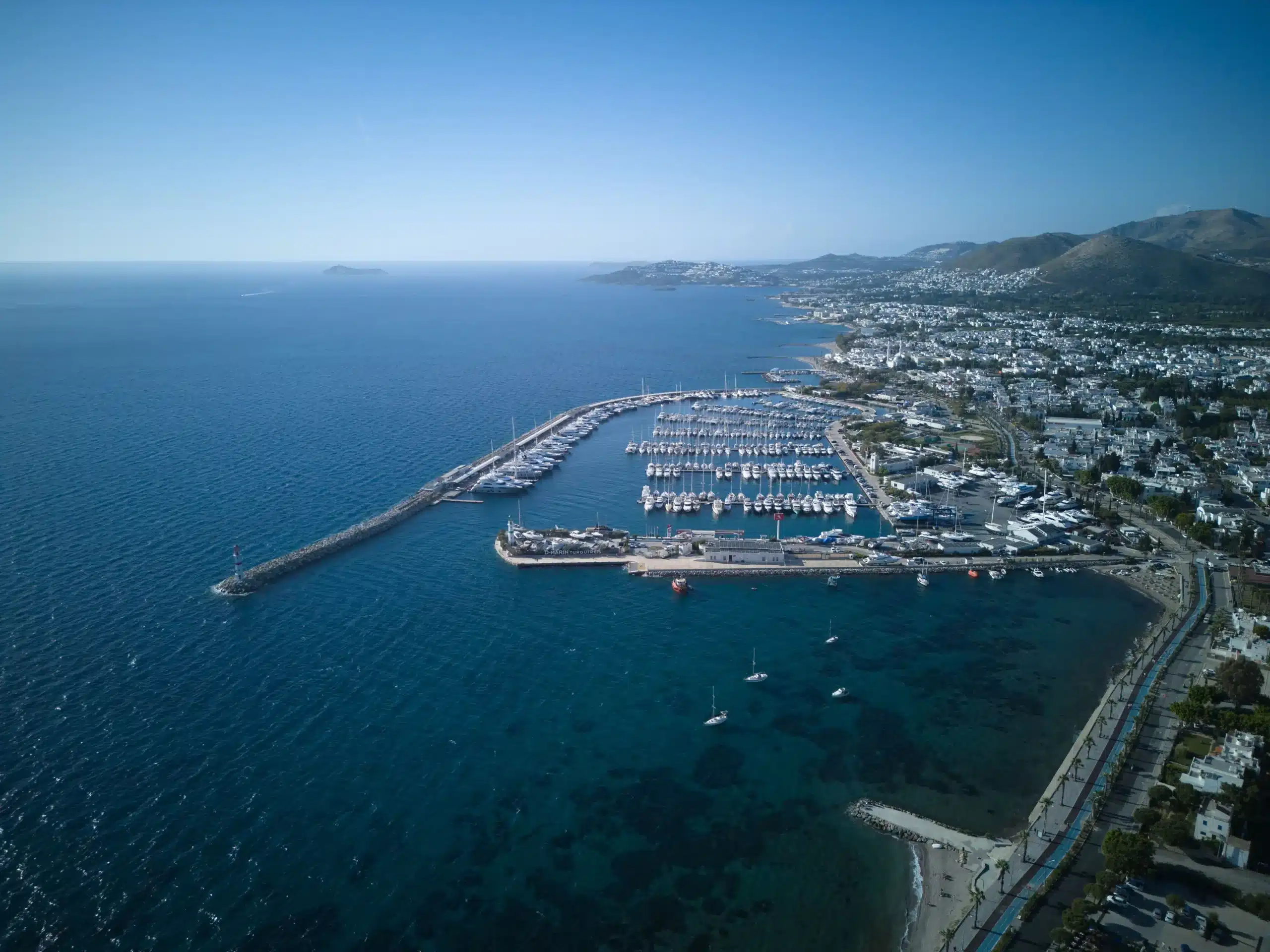 D-Marin Turgutreis, Muğla’nın Bodrum ilçesine bağlı Turgutreis beldesinde, Bodrum Yarımadası’nın batı ucunda yer alıyor. Ege Denizi’ne açık konumu sayesinde Yunan adalarına en yakın Türk marinalarından biri olarak öne çıkan tesis, özellikle Kos, Kalymnos ve Leros rotasında seyir yapan yatlar için doğal bir çıkış ve dönüş noktası işlevi görüyor. Marina, Doğuş Grubu’nun D-Marin zinciri bünyesinde işletiliyor.