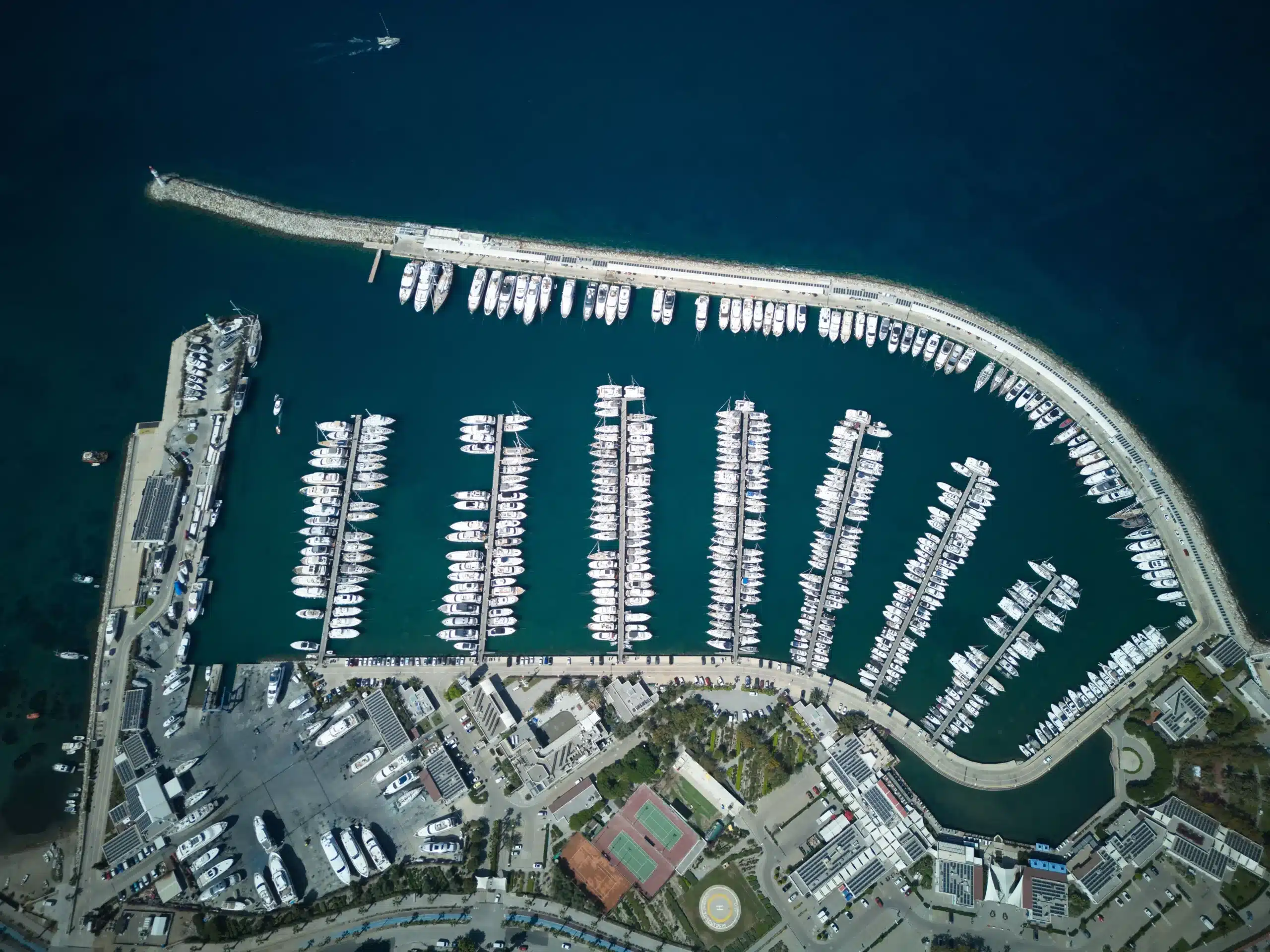 Marina, denizde yaklaşık 550 yat bağlama kapasitesine sahip. 70 metreye kadar yat kabul edebilen tesis, süperyat ölçeğine uygun iskele ve rıhtım düzeniyle hizmet veriyor. Marina havzasındaki derinlik 5 ila 6 metre aralığında değişiyor. Açık denize yakın konumuna rağmen mendirek yapısı sayesinde kontrollü ve güvenli bir bağlama alanı sunuluyor.