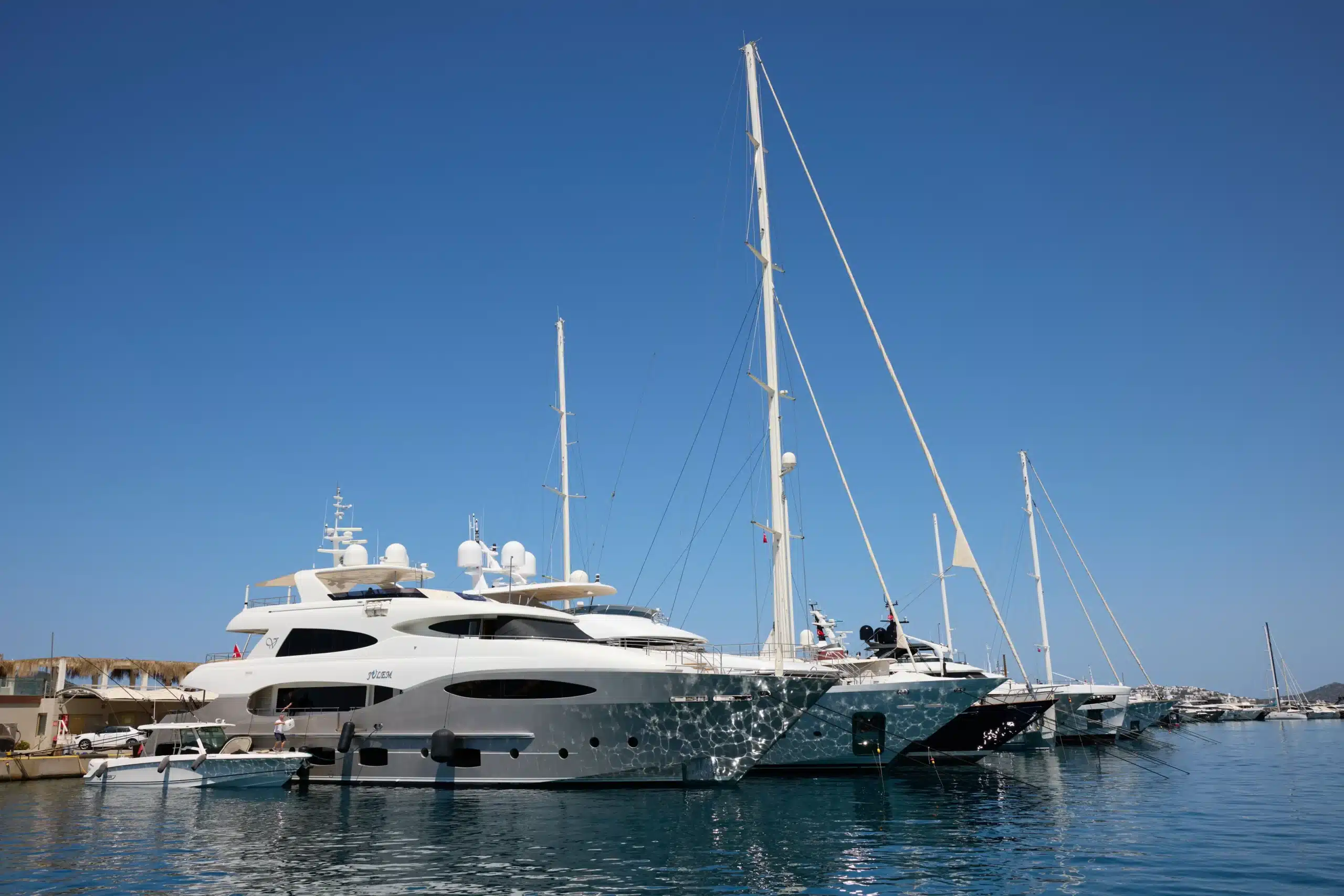 D-Marin Turgutreis, süperyat operasyonlarına uygun teknik altyapısıyla dikkat çekiyor. Marina sahasında yüksek kapasiteli travel lift sistemleri bulunuyor ve çekme-atma hizmetleri sağlanıyor. Elektrik, su, internet, yakıt ikmal noktası, palamar hizmetleri ve atık alım sistemleri marina altyapısının bir parçası olarak sunuluyor. Teknik bakım ve onarım ihtiyaçları, marina bünyesinde veya Bodrum Yarımadası’ndaki tersane ve servis ağı üzerinden karşılanabiliyor.