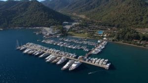 Marina, denizde yaklaşık 1.300 yat bağlama kapasitesine, karada ise 220 tekne park alanına sahip. Toplam kapasite itibarıyla 1.500’ün üzerinde tekneye hizmet verebilecek ölçekte planlanan tesis, Türkiye’nin en büyük marina kompleksleri arasında yer alıyor. 65 metreye kadar yat kabul edebilen marinanın rıhtım ve iskelelerinde maksimum derinlik 6,5 metre seviyesinde bulunuyor. Marina genelinde tonoz sistemi uygulanıyor ve bu nedenle demirleme yapılmasına izin verilmiyor. Tüm bağlama ve ayrılma işlemleri palamar botları eşliğinde gerçekleştiriliyor.