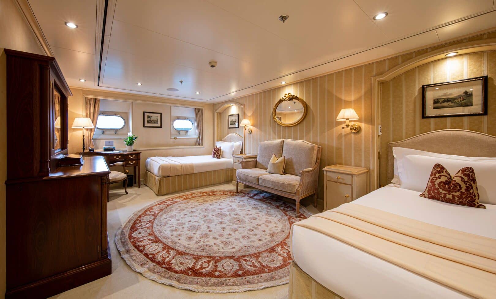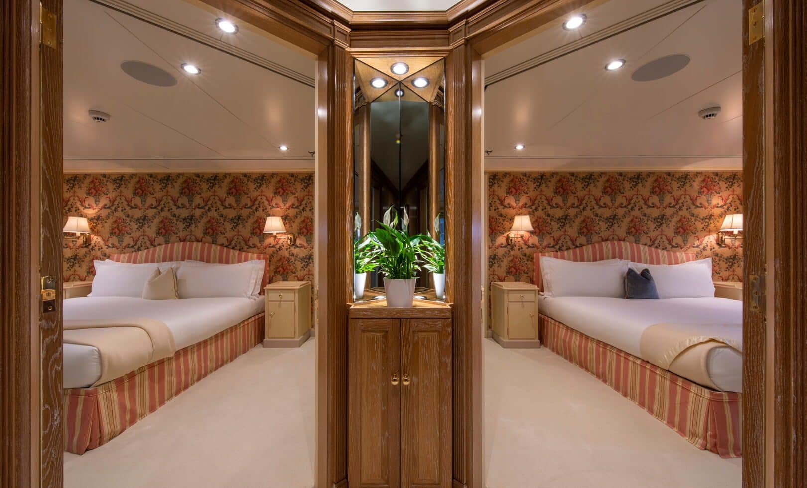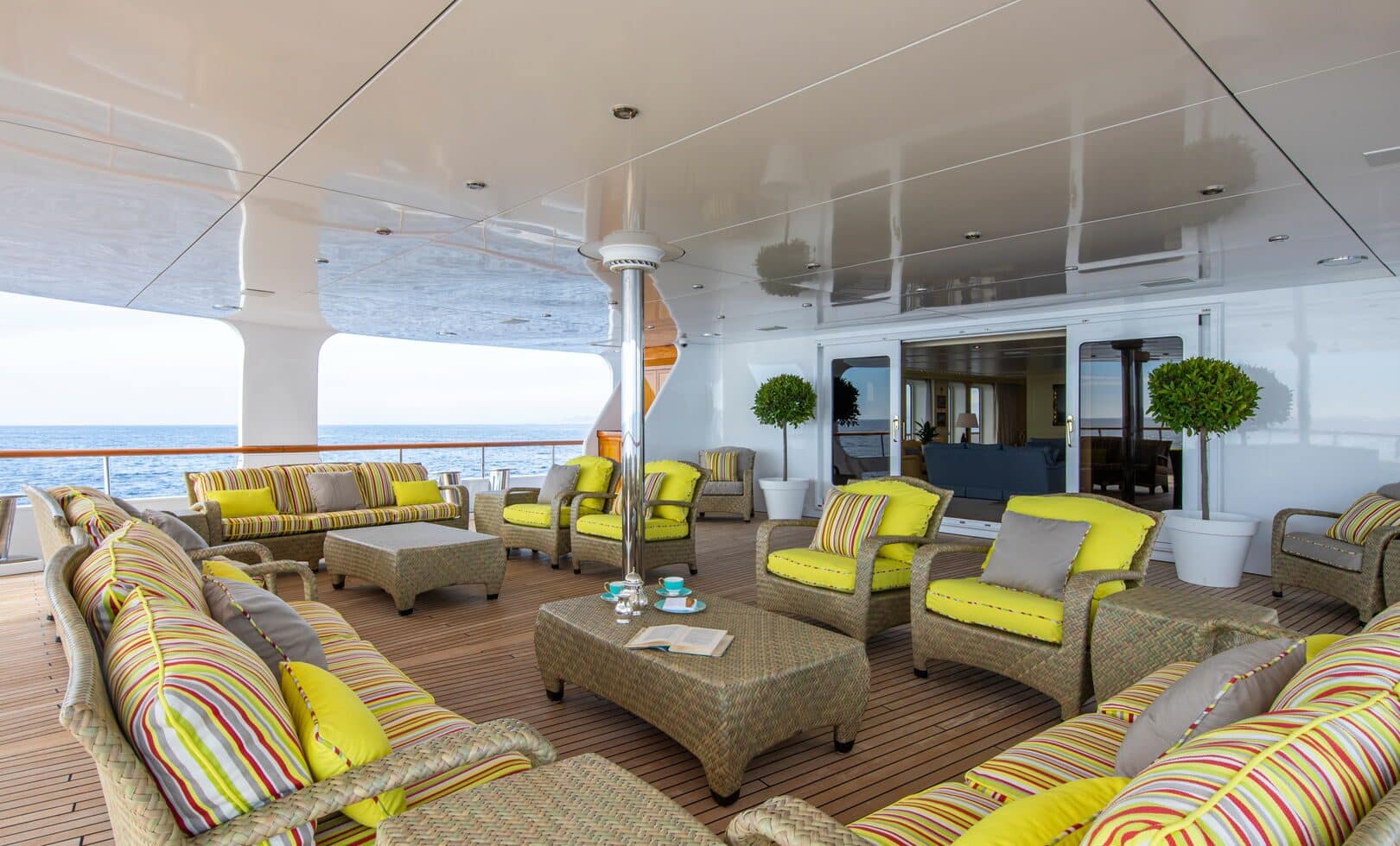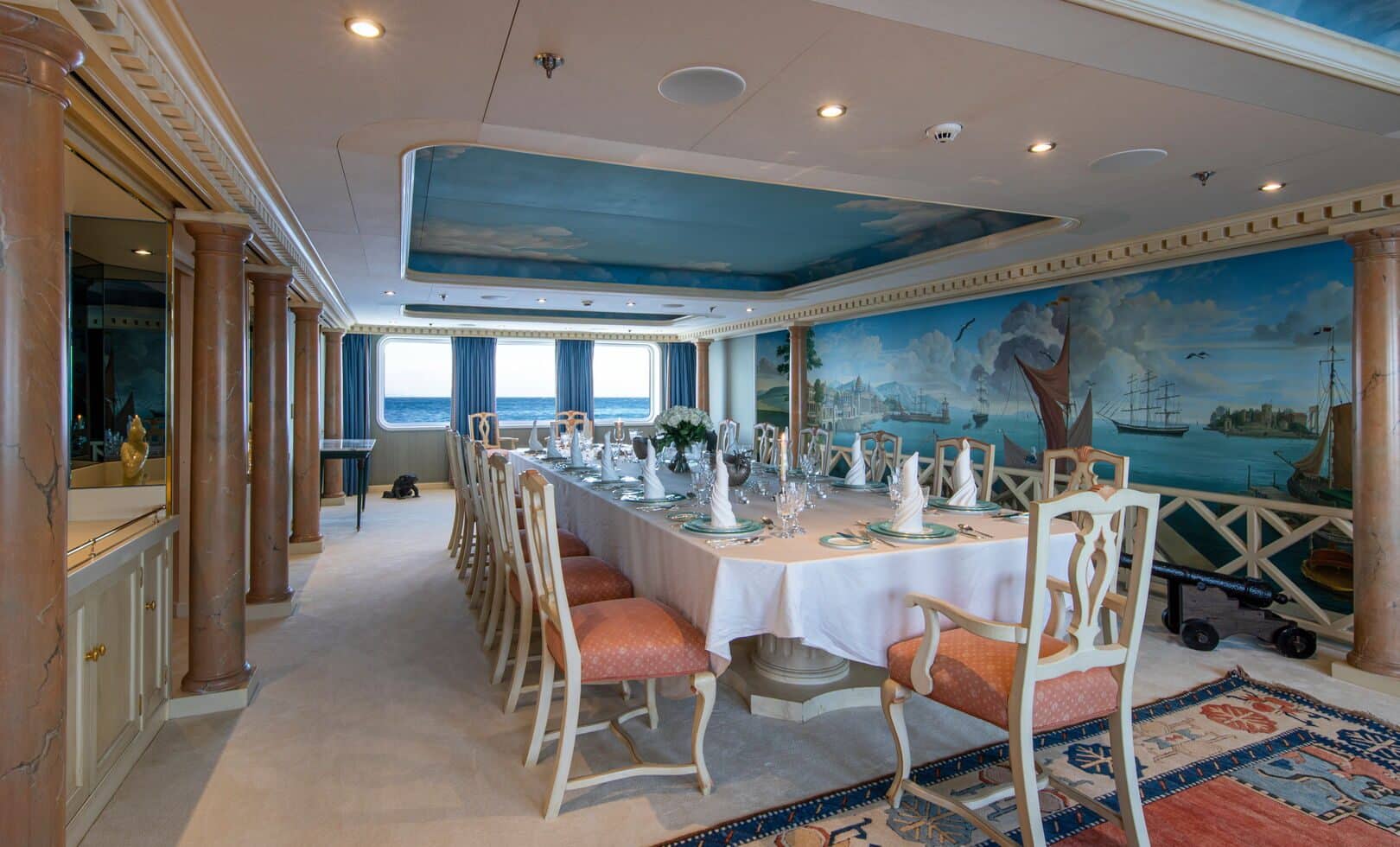 Altı güverteli süperyat; helikopter pisti, gözlem salonu, jakuzi, fitness odası, dalış odası ve çalışma alanlarıyla donatıldı. 10 ayrı süitte 22 misafire kadar konaklama imkânı sunarken, 23 kişilik mürettebat kapasitesiyle hizmet veriyor.