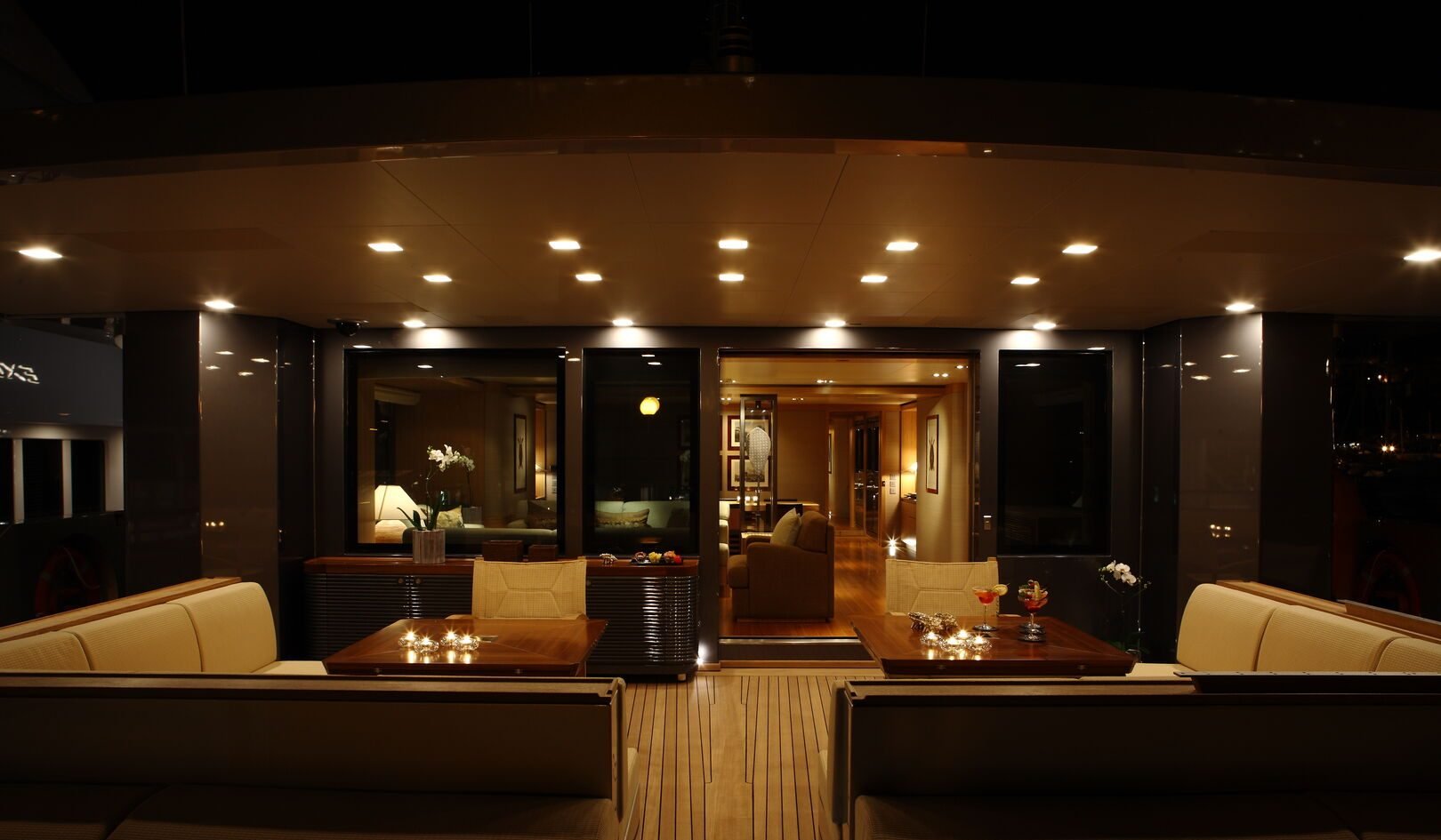 Falco Moscata, sadece performansı ile değil, aynı zamanda sunduğu lüks ve konfor ile de dikkat çekmektedir. Geniş güneşlenme alanları, modern eğlence sistemleri ve yüzme platformu gibi özellikleri, misafirlerine keyifli ve rahat bir tatil imkânı sunar. Yatın iç mekânı, Sinot Exclusive Yacht Design tarafından özenle tasarlanmış olup, her detayıyla lüksü ve konforu yansıtmaktadır.