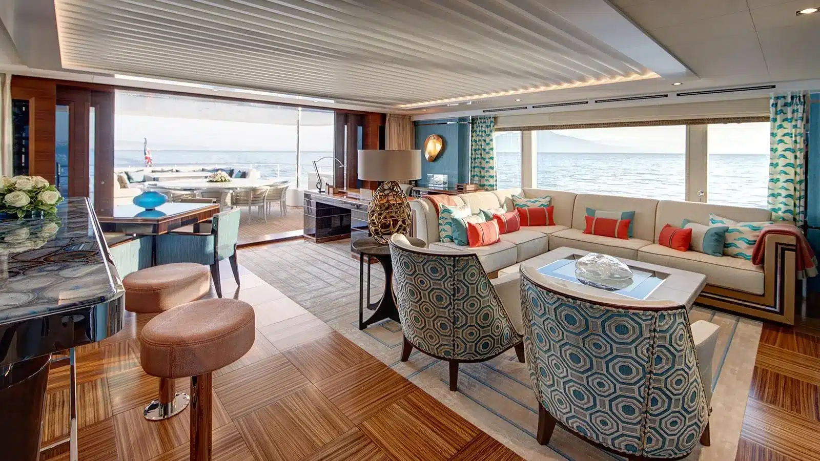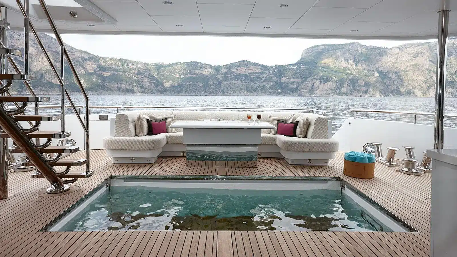Yatın öne çıkan özelliği, ana güvertedeki derinliği ayarlanabilir yüzme havuzu. Havuzun zemini tamamen yukarı kaldırıldığında güverte ekstra kullanım alanı sunarken, orta konumda havuz içindeki jakuzili alan aktif hale geliyor. Bu tasarım, Feadship mühendisliğinin işlevsellik ve estetikte geldiği noktayı gözler önüne seriyor.
