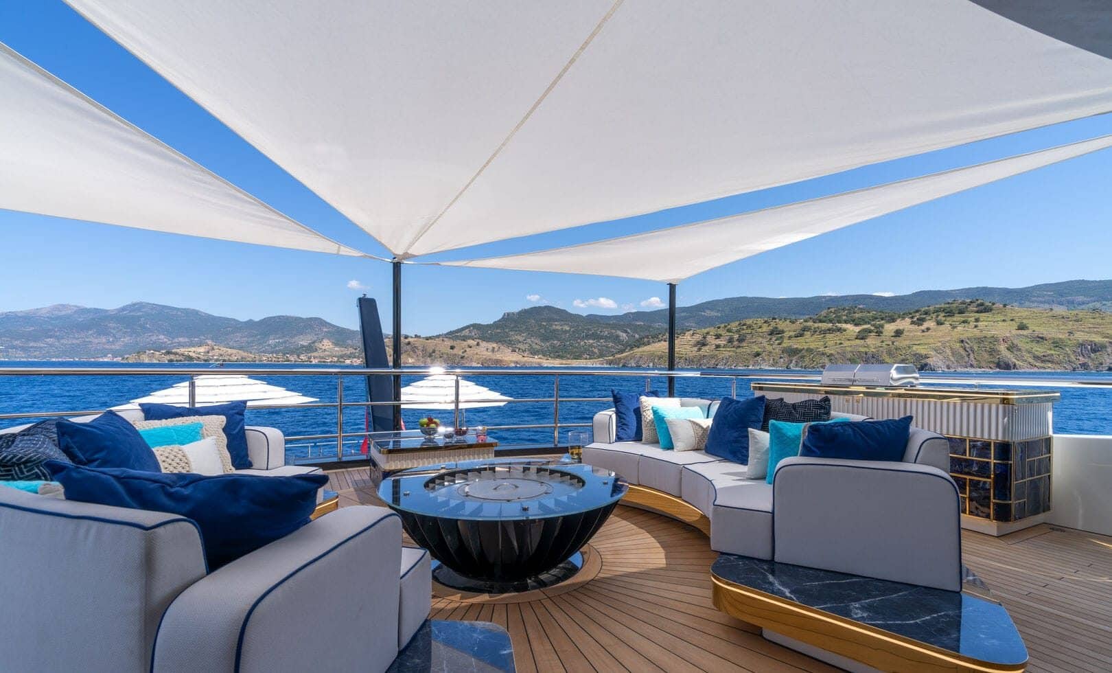 Bilgin’in “Bilgin 263” serisinin ikinci gövdesi olan Leona, denizlerde cesur bir duruş sergiliyor. Dış tasarımda Unique Yacht Design imzası taşıyan yat, keskin ama akıcı hatlarıyla modernliğin ve gücün sembolü olurken, iç mekânda H2 Yacht Design tarafından hazırlanan renkli ve çağdaş yaşam alanlarıyla alışılmışın çok ötesinde bir konfor sunuyor. İki katlı beach club, SPA kompleksi, sinema salonu, spor salonu ve dev cam yüzeyli sosyal alanlarıyla misafirlerine otel konforunda bir deniz deneyimi yaşatıyor.