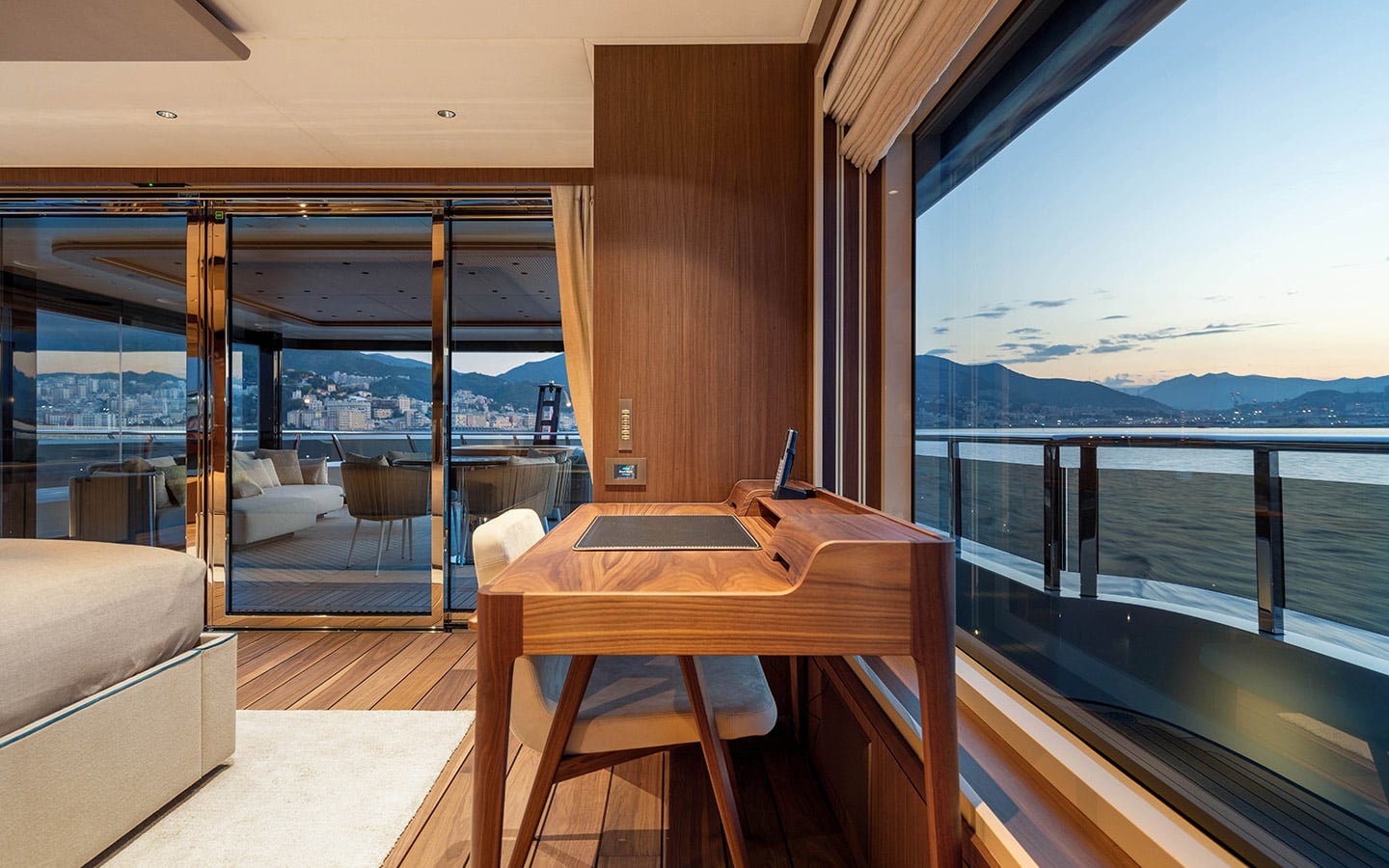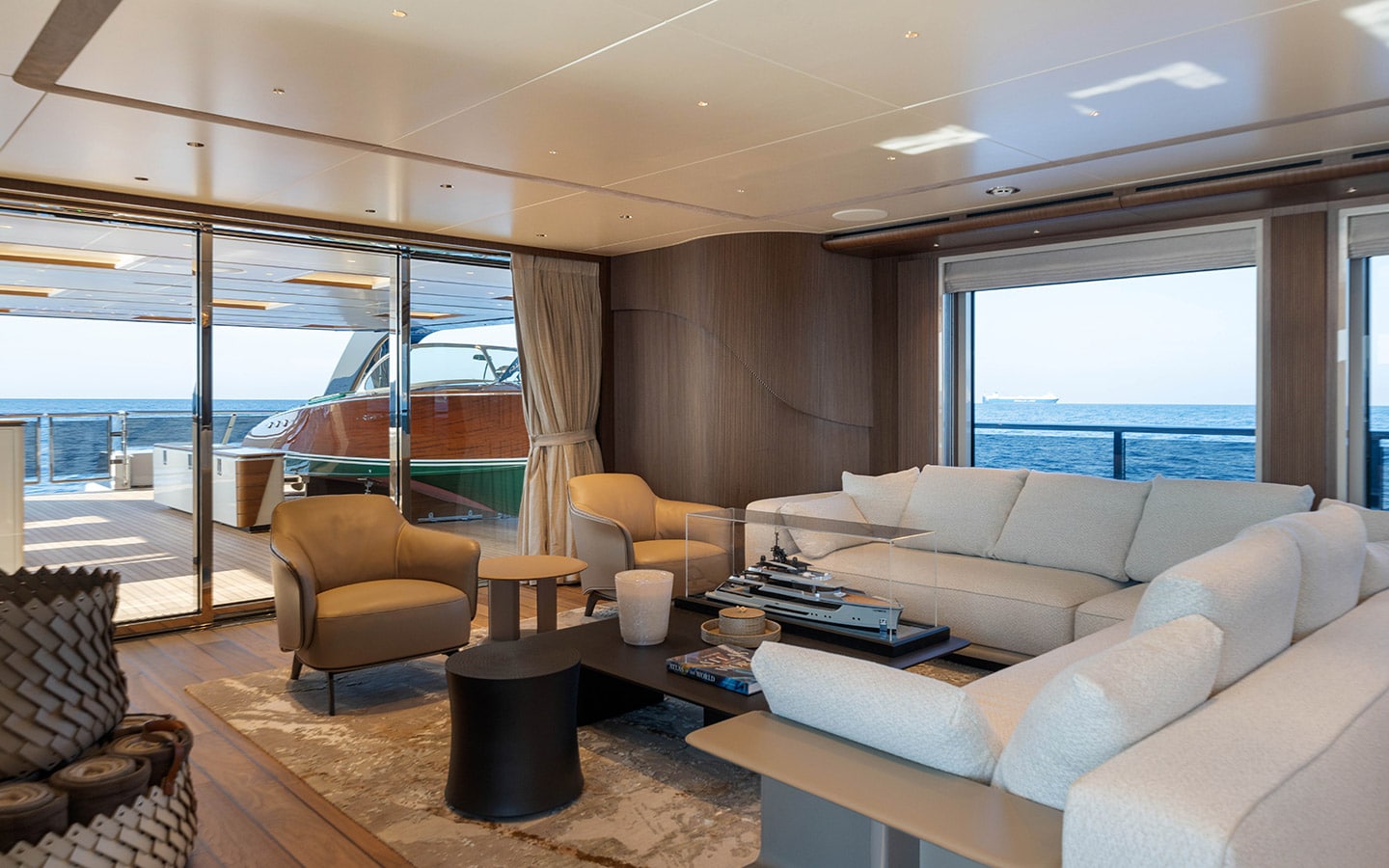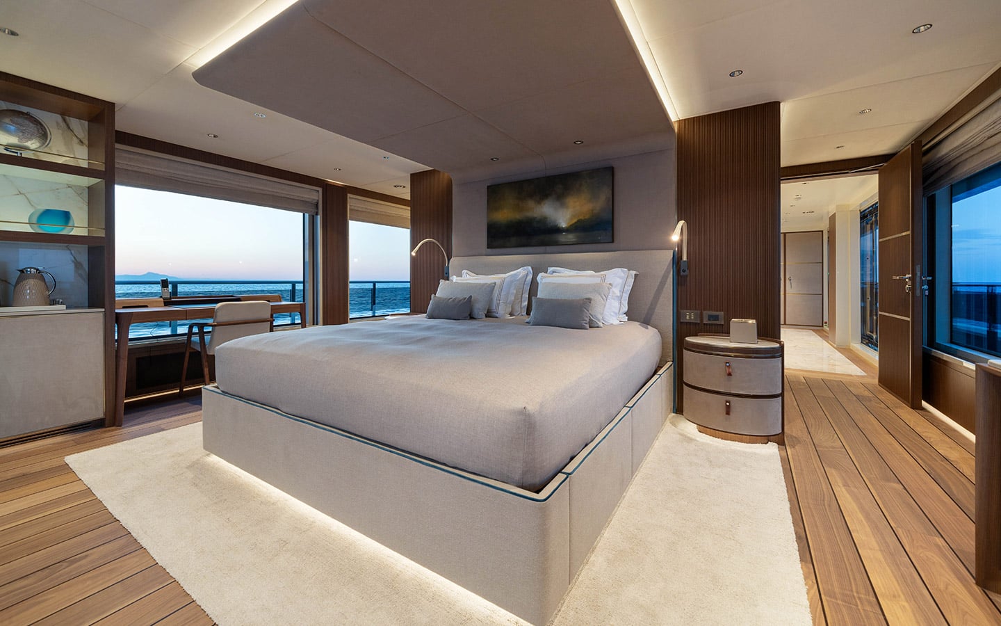 Beş kamarada on misafir kapasitesi ve beş kamarada dokuz kişilik mürettebat düzeni, uzun süreli seyirlerde işleyişi rahatlatan bir plan sunuyor. Açık alanlar, arka güverte ve üst güverte kullanımıyla denizle temasın kesintisiz sürmesini hedefliyor.