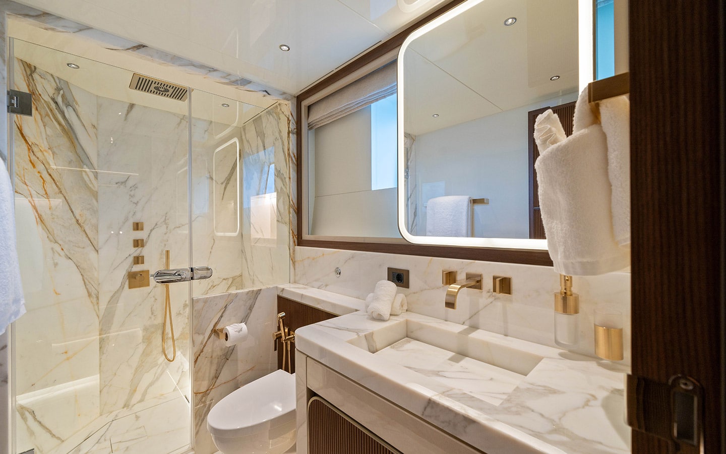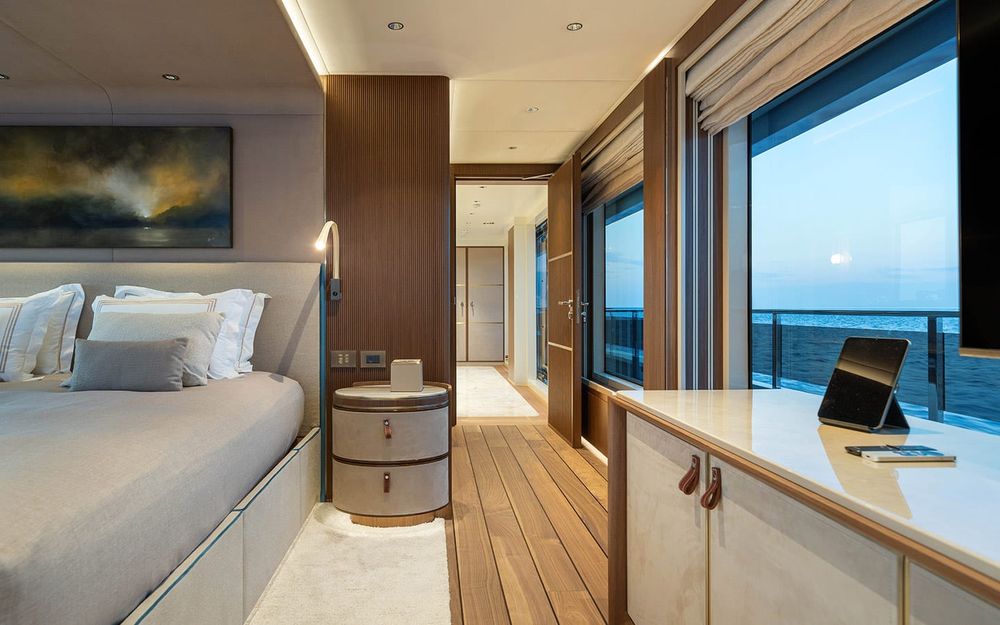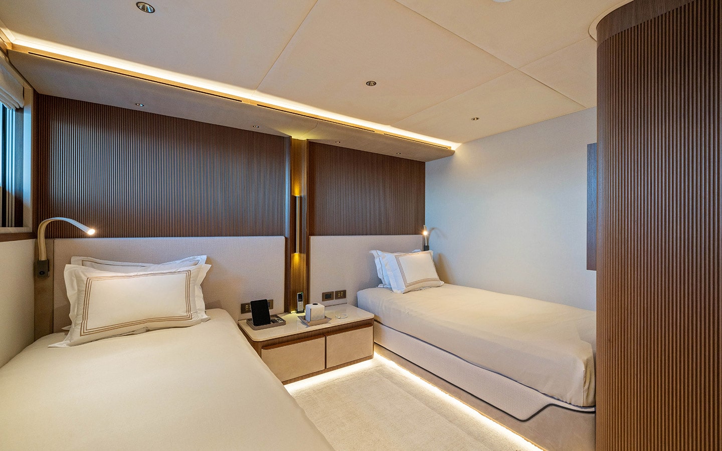Beş kamarada on misafir kapasitesi ve beş kamarada dokuz kişilik mürettebat düzeni, uzun süreli seyirlerde işleyişi rahatlatan bir plan sunuyor. Açık alanlar, arka güverte ve üst güverte kullanımıyla denizle temasın kesintisiz sürmesini hedefliyor.